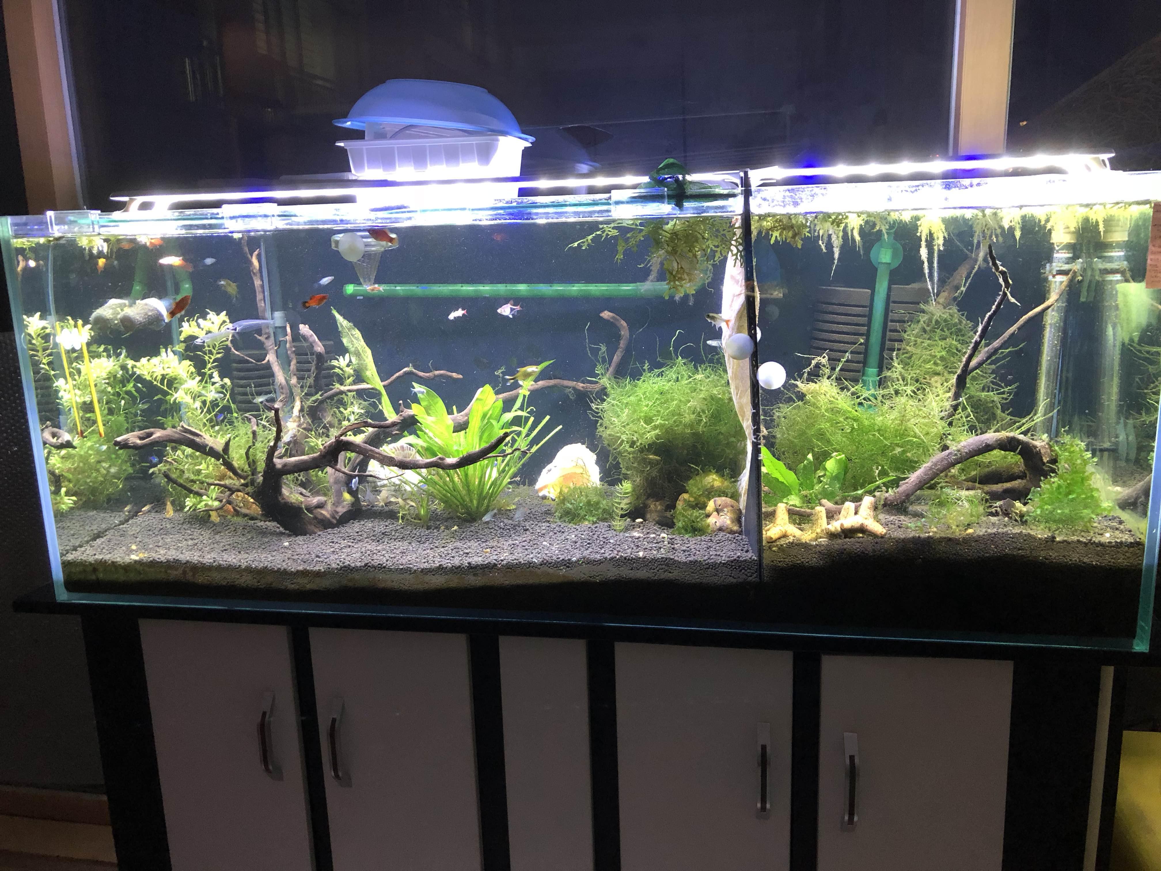 어릴 때부터 집에 큰 수조 들여놓는 게 작은 소원이었는데, 어찌저찌 회사에서의 극심한 스트레스로 인해 와이프의 허락을 받아 중고로 수조를 들였었다.(중고지만 굉장히 깔끔했고 하자가 없다. 관리가 잘 된 수조를 SUV로 수조 한번, 받침대 한번 이렇게 두번 왔다갔다했다;)
