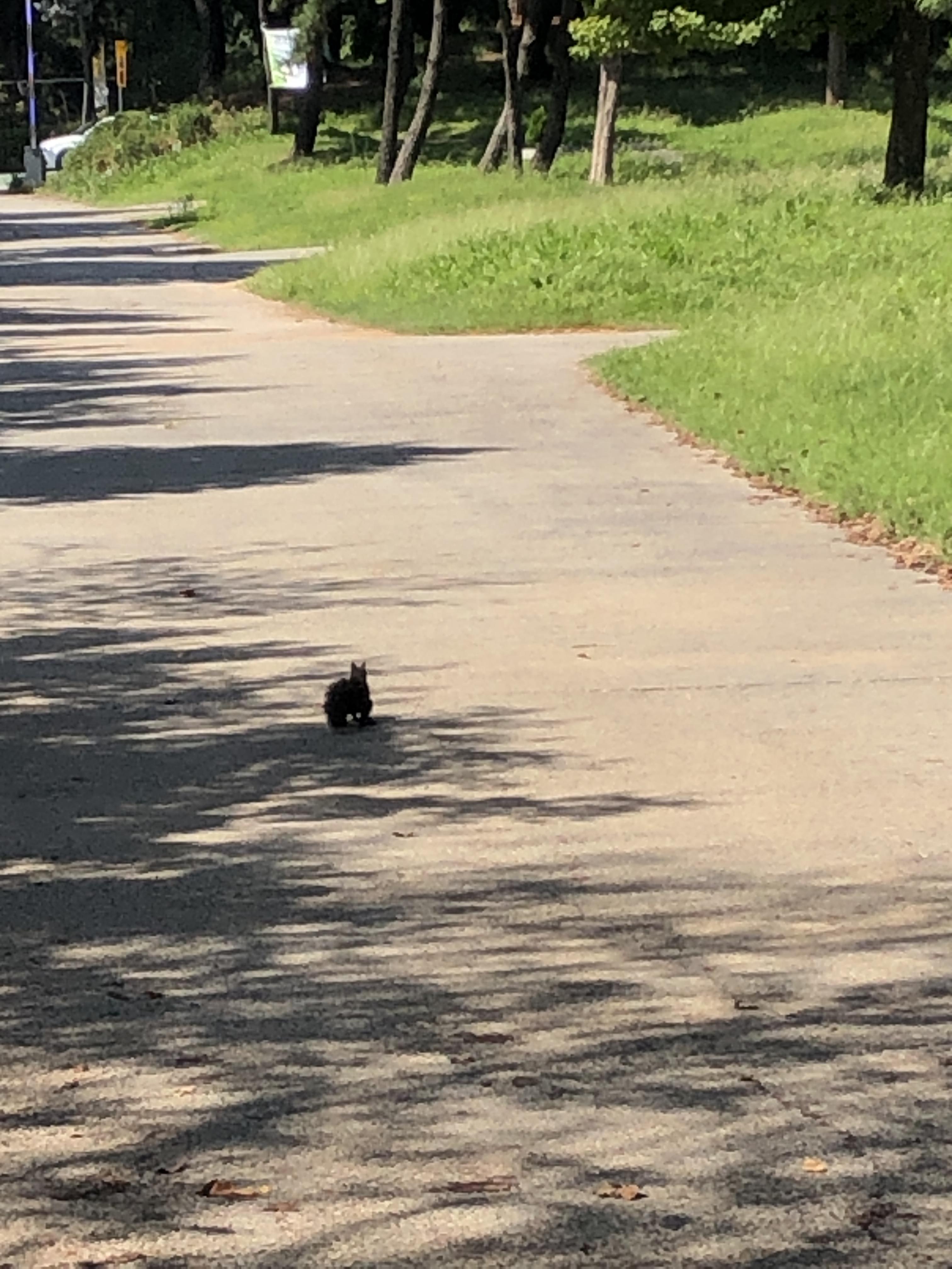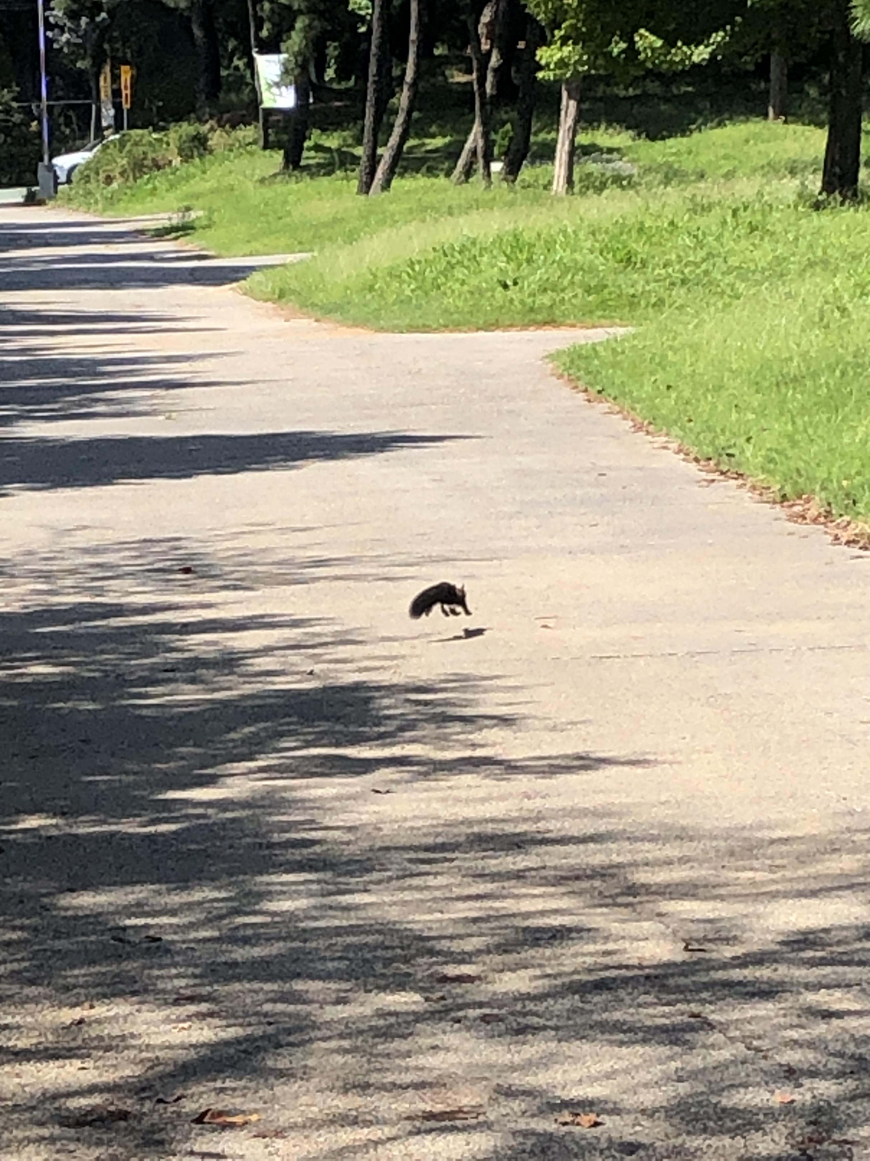 산책하다가 낙엽에서 부시럭 거리는 소리가 들려서 보니 청설모가 겅중겅중 뛰어다니는 중이다