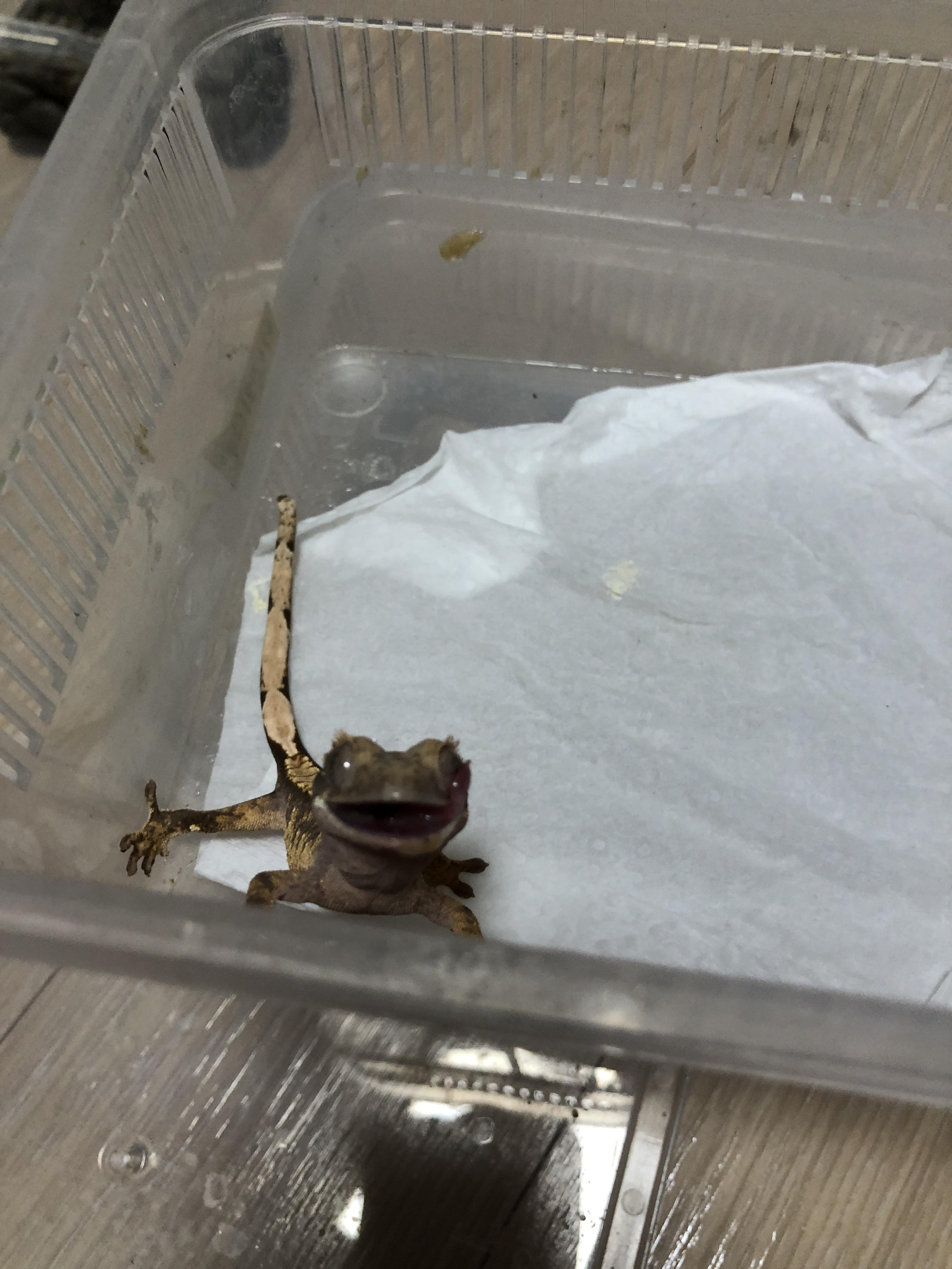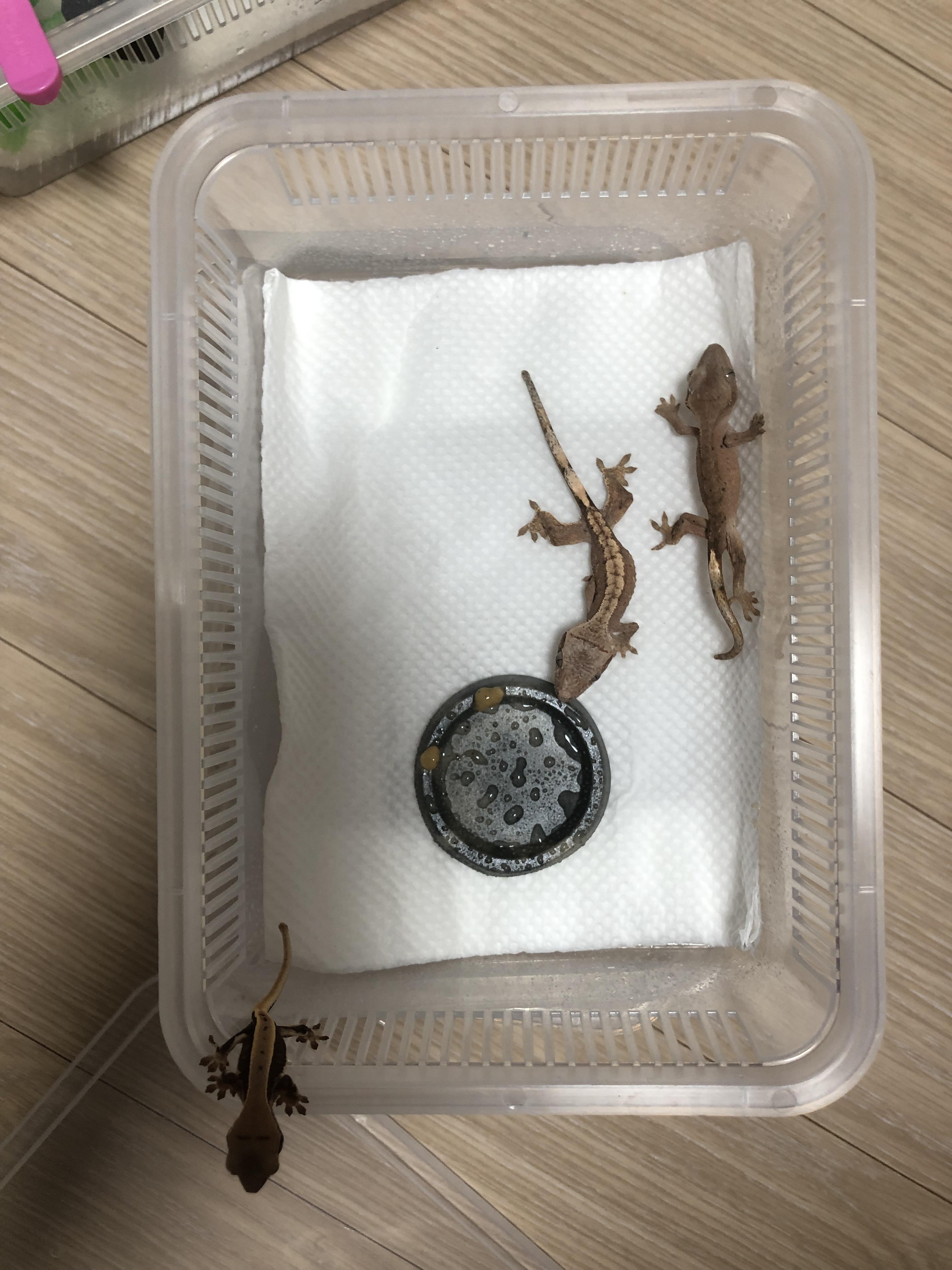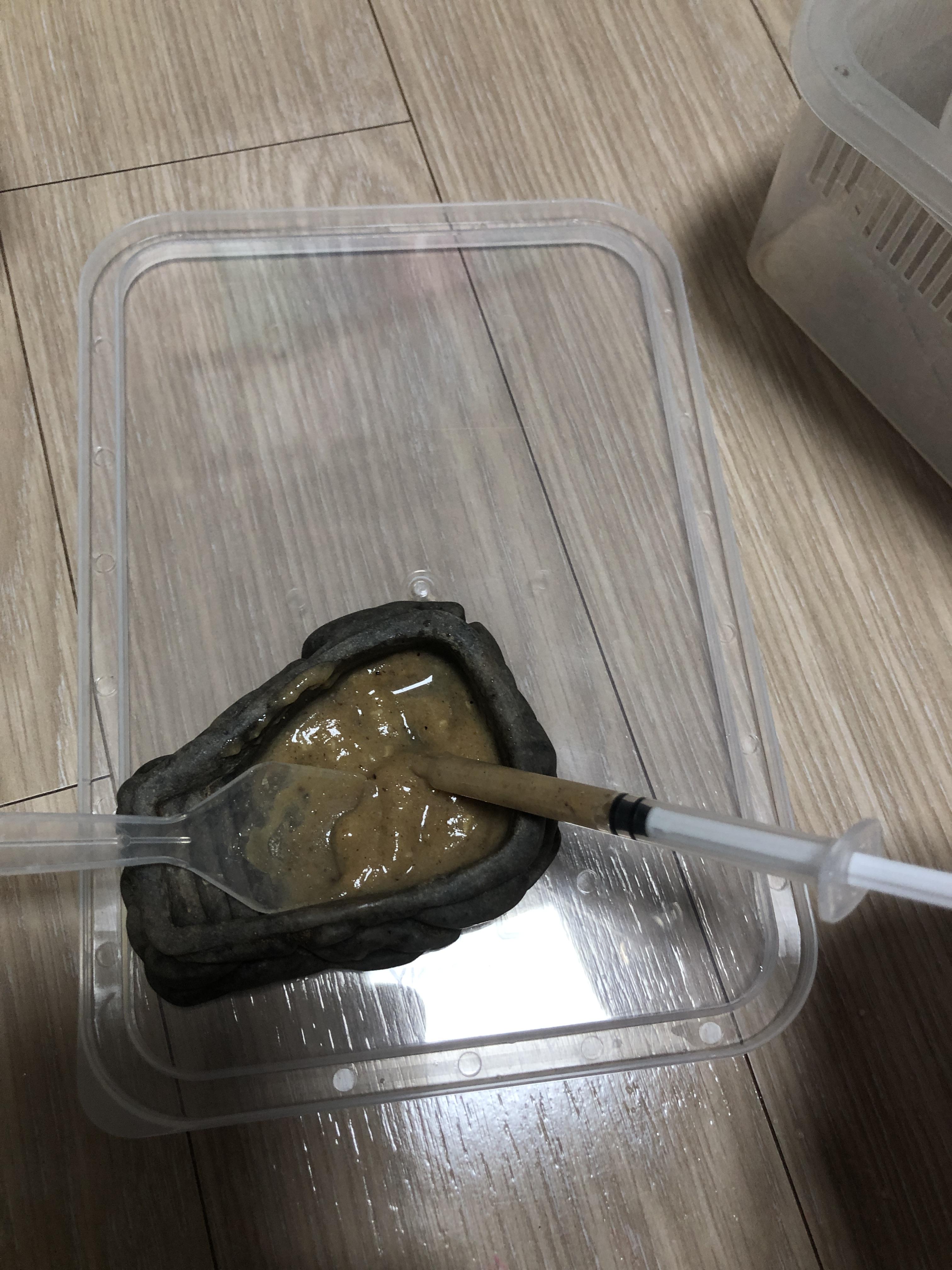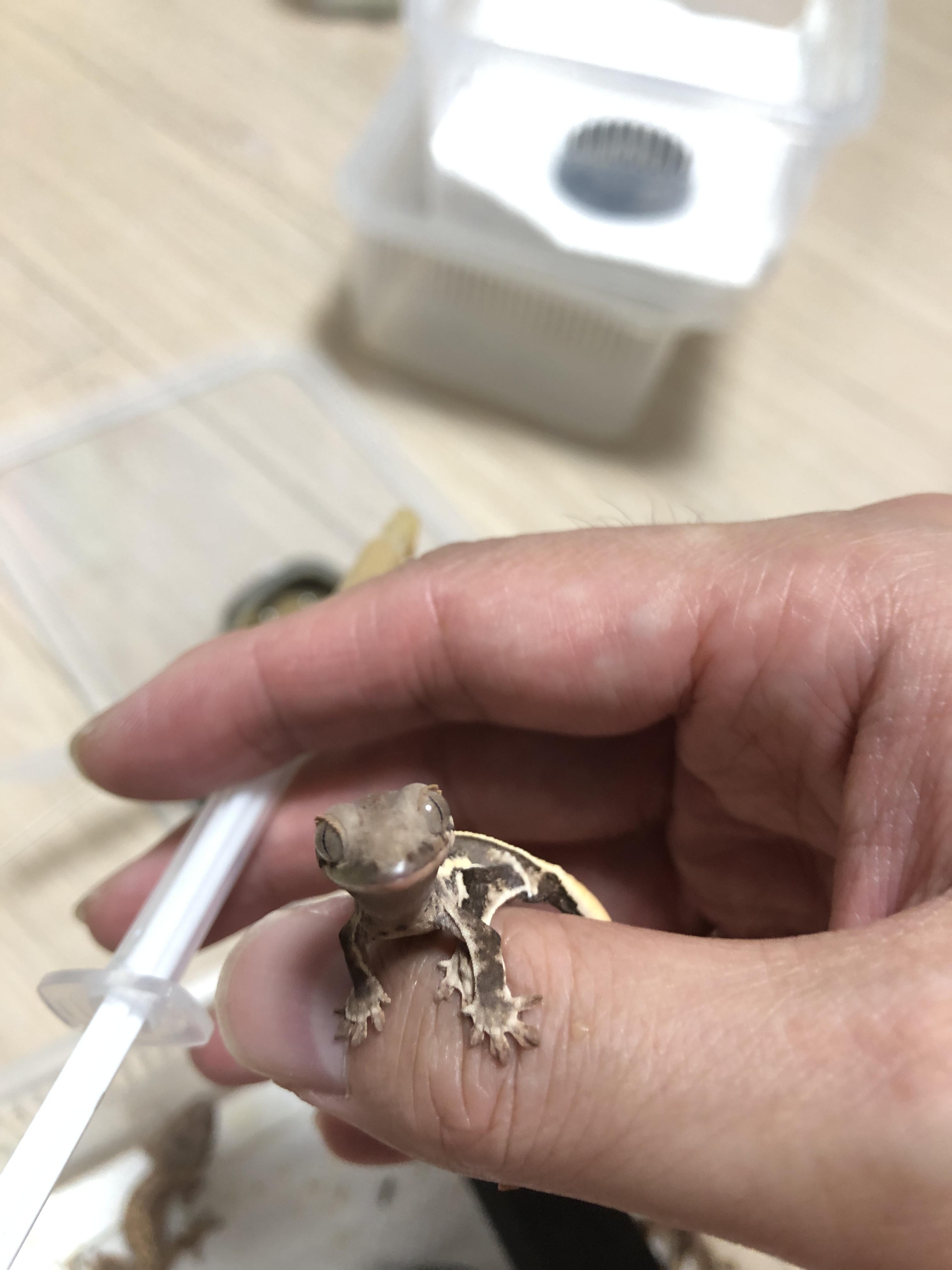 1. 크레스티드 게코는 슈퍼푸드를 물에 개어 바늘 없는 주사기로 조금씩 뽑아 입가에 묻혀주면 잘 받아먹는다