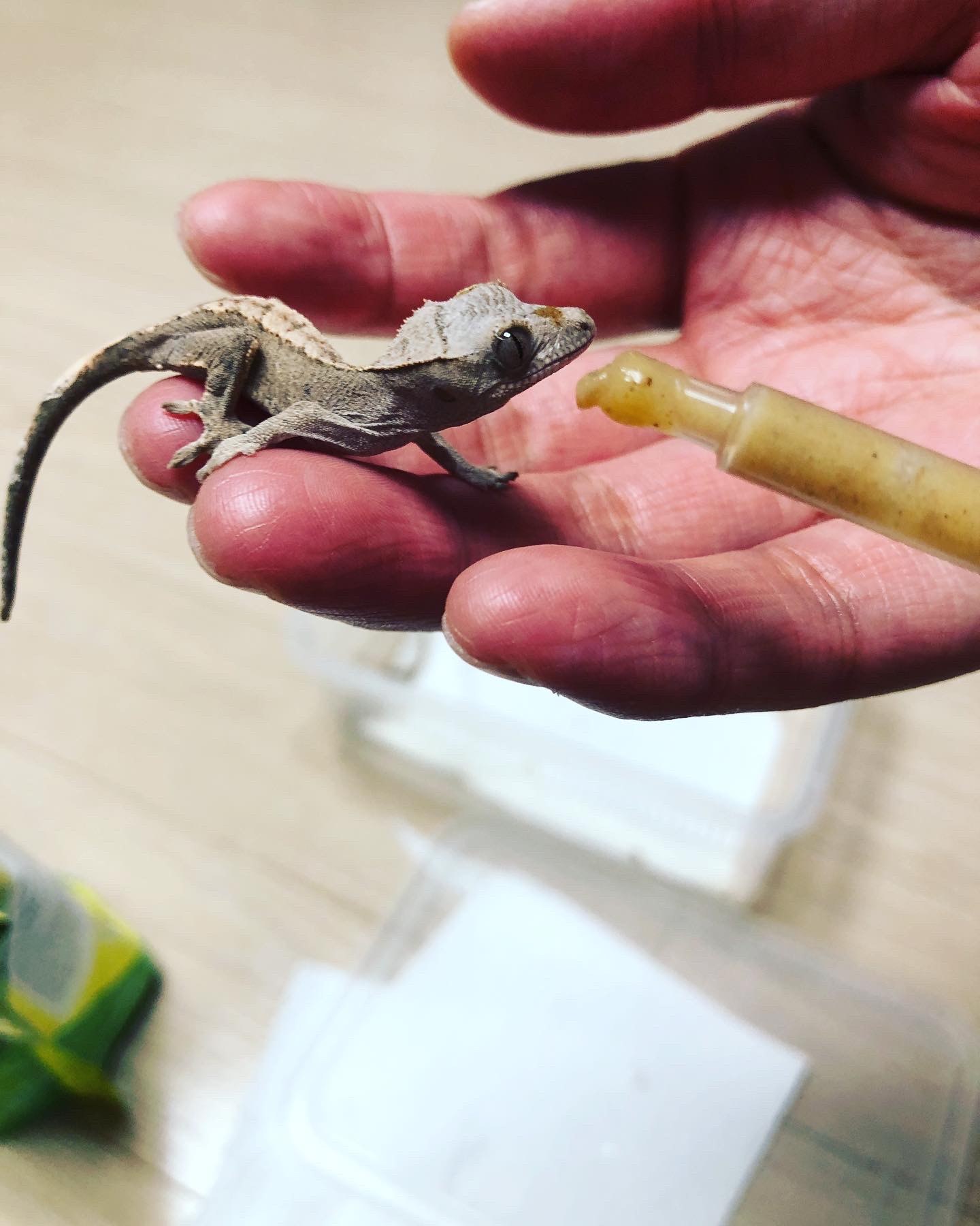 크레스티드게코는 원래 자연상태로 그냥 놔뒀으면 멸종되었을 아이들이다ㅠ 적자생존의 자연상태에서는 이 친구들이 번식하는 속도보다 포식자에게 잡아먹히거나 도태되어 감소하는 속도가 더 빨랐었나보다ㅠ 사람들이 이 친구들의 관상가치와 반려생물로서의 위상을 만들어주면서 인위적 번식이 기하급수적으로 늘었다. 덕분에 크레스티드게코는 멸종의 위기에서 벗어날 수 있었다고 하니 신기한 생물이다. 정말 대부분의 생물들이 사람때문에 멸종되어 사라져가는데 반대로 사람들 덕분에 멸종위기에서 벗어나다니… 이 친구들이 인기가 많은 이유는 충식(곤충을 먹이로 주는 것)을 하지 않아도 먹이가루를 물에 녹여 스프처럼 만들어주면 혀로 낼름낼름 받아먹기 때문이다. 그래서 곤충같이 생먹이를 주는 게 쉽지 않은 사람들에게는 매력적인 친구이다. 1...
